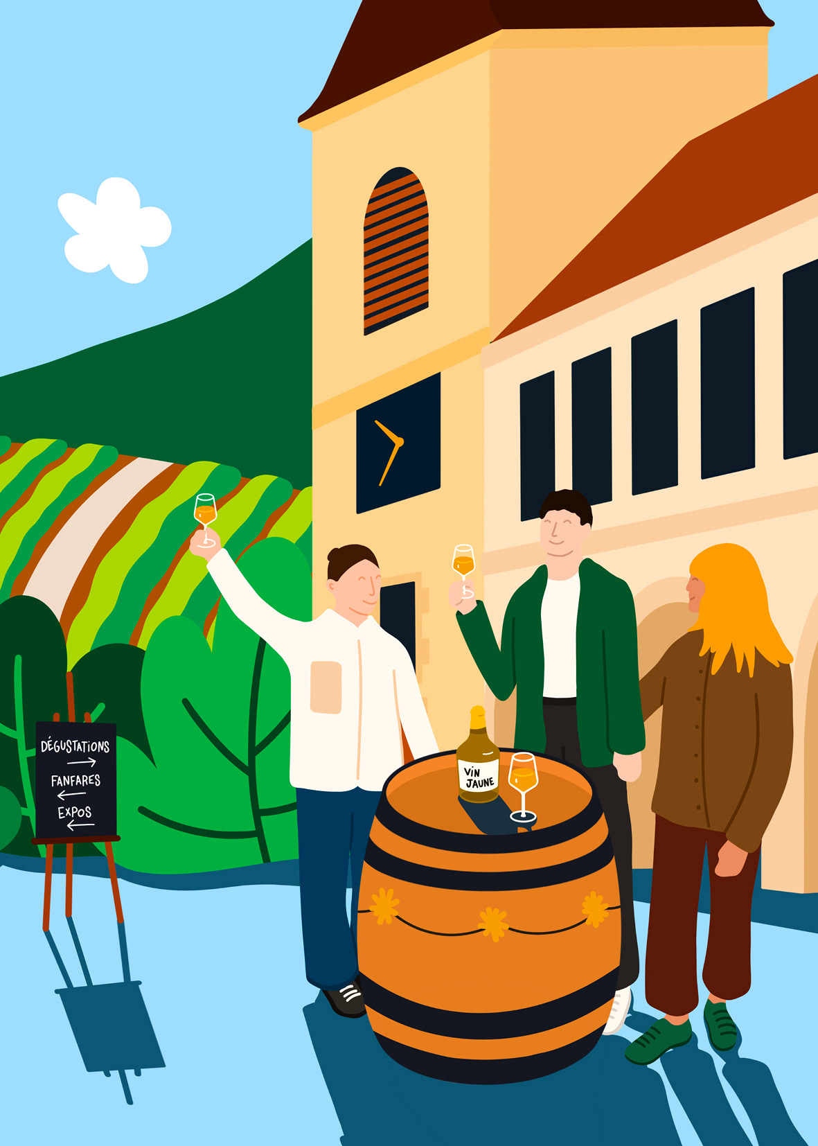 Illustration réalisée lors de l'appel à projet pour l'affiche de la Percée du Vin Jaune 2026. (Projet non retenu.)